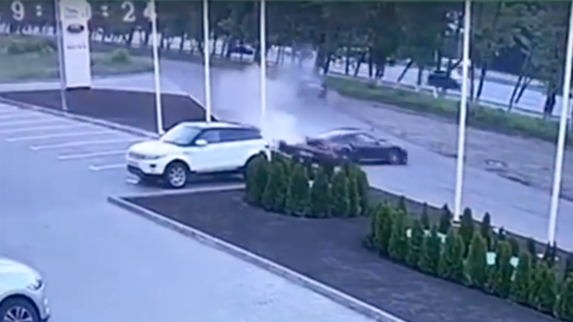 As you can see via the CCTV, the Porsche in question goes into a corner at a high rate of speed and begins to brake, causing the back end to kick out. In doing so, the Porsche travels into the opposite lane and collides with an oncoming car. The collision caused the Porsche to do a 180-degree spin, eventually coming to a rest around 50 yards later. Due to the extreme amount of smoke and body damage, it seems safe to say this Porsche 911 Turbo was totaled—and thus a complete loss to the dealership.