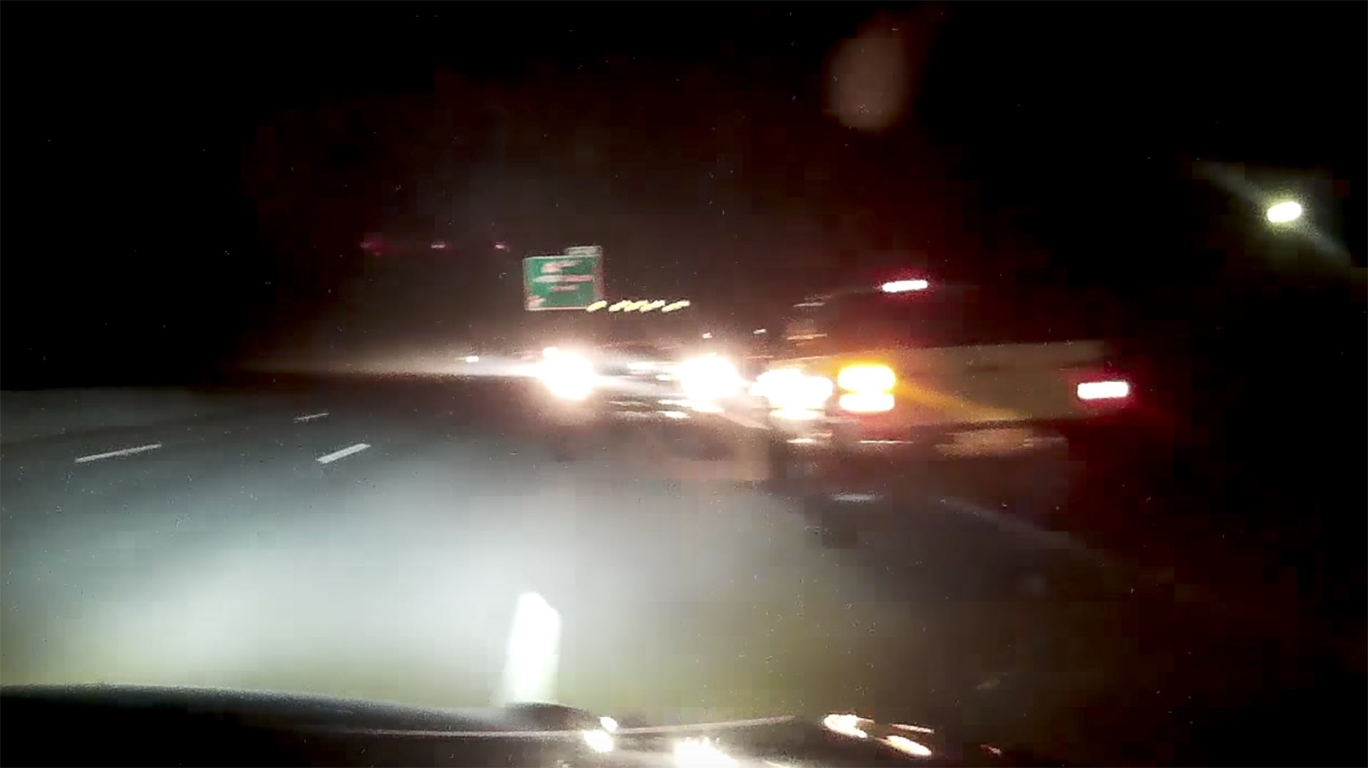 Remaining alert while driving is critical for obvious reasons, but this video below really drives the point home. The clip starts off with a seemingly normal night drive—when all of a sudden, the pickup in front of the Hyundai Sonata swerves to the right to avoid a massive Ram 2500 barreling down Interstate 215 southbound in the wrong direction. The truck slams into the passenger side front quarter panel of the car, before continuing on its path of destruction.