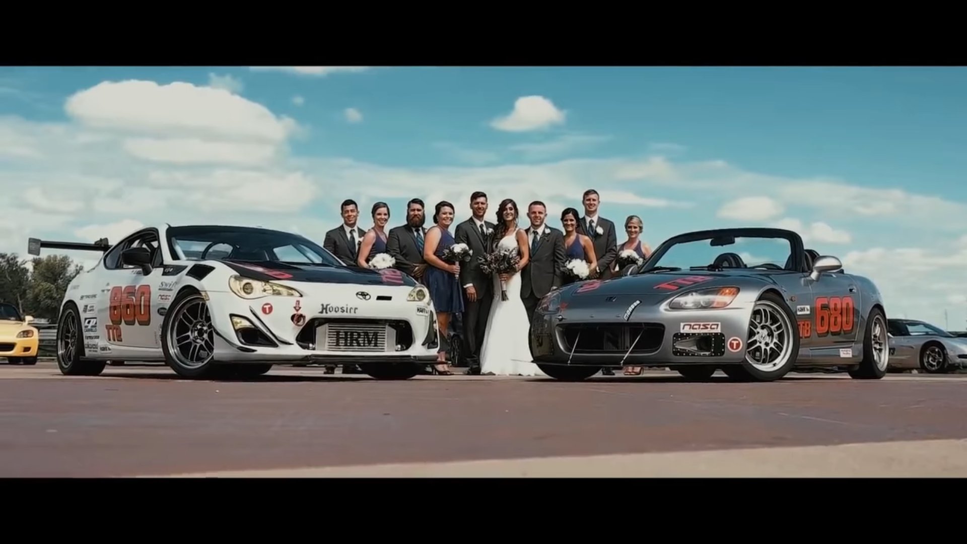 Rotary engine-worshipping Youtube channel Rotors Magazine released a video yesterday about two motorheads turned spouses who got married in the best way possible. Justin and Tiffany Kelly are racing instructors at a small track and have the pleasure of driving fully custom race cars for a living. The bride daily drives a Honda S2000 AP2, while the groom uses his turbocharged Scion FR-S as a dedicated track car.