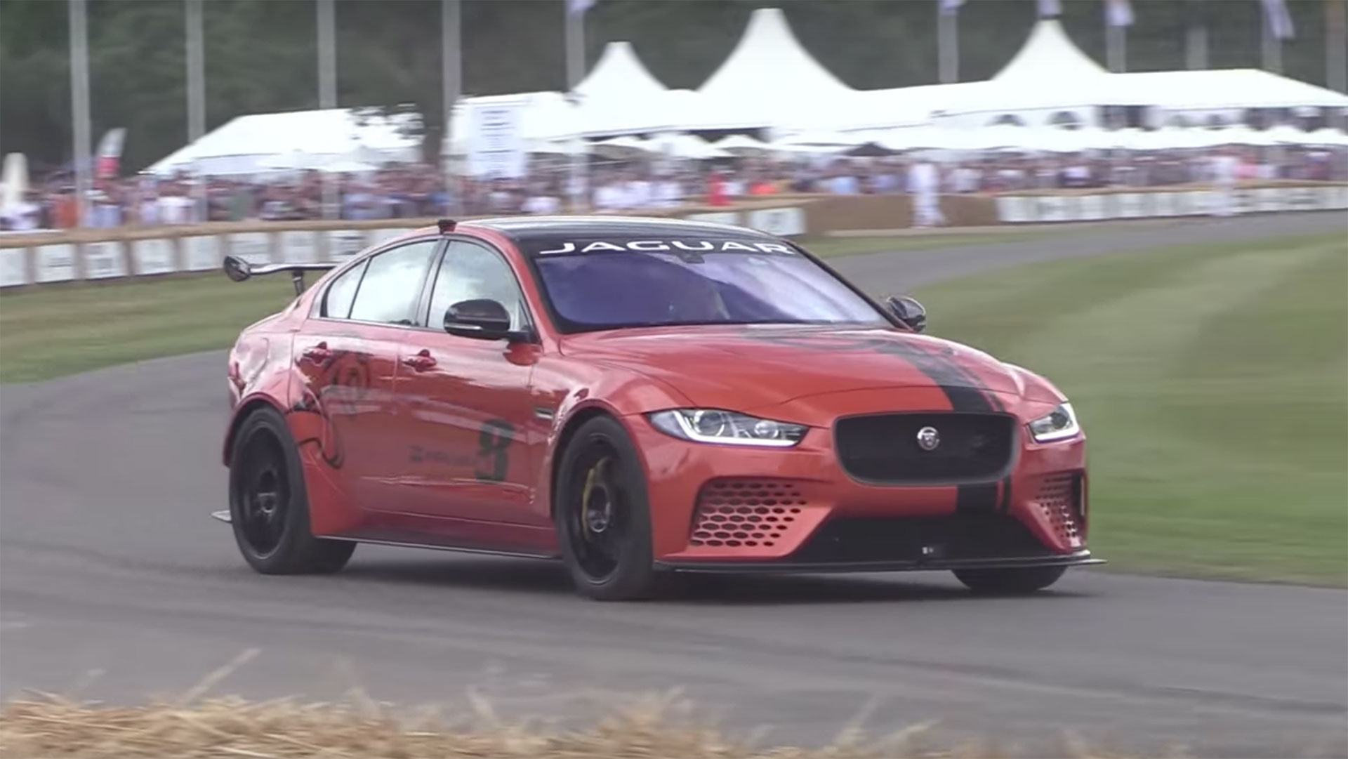 In order to show off this beautiful beast, Jaguar brought the XE SV Project 8 to the Goodwood Festival of Speed where the car tore up the 1.16 mile hill climb. As you would expect the XE SV Project 8 sounds very similar to the F-Type SVR. The violent backfires and burbles echo through the trees, forcing everyone to turn their head as the car whizzes by. Between the aggressive exhaust not and even more aggressive aerodynamic kit, you can quickly tell Jaguar means business with this rare track car.