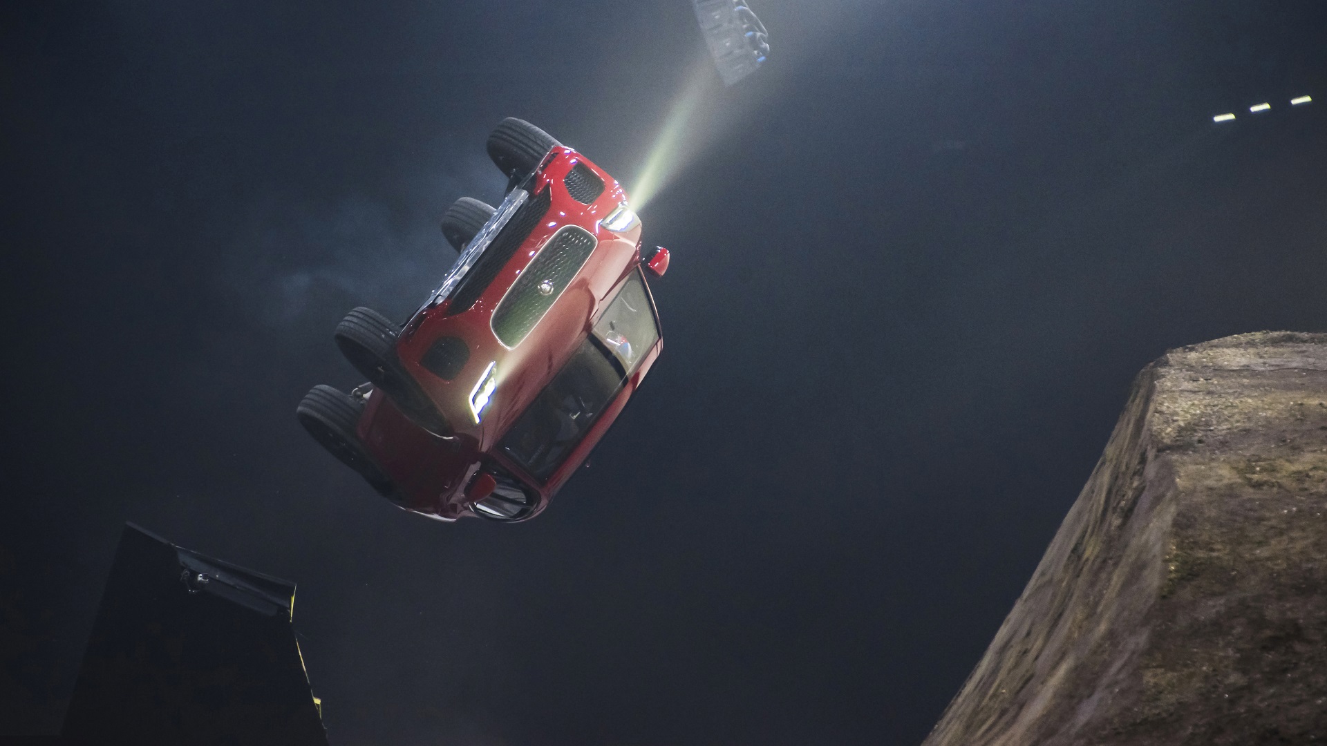 Someone at Jaguar must have played a little too much Star Fox. At Thursday’s premiere of the new E-Pace in London, stunt driver Terry Grant set a new world record with a 15.3-meter corkscrew jump. This is somehow supposed to prove that the E-Pace lives up to Jaguar’s “Art of Performance” philosophy. Regardless of Jaguar’s marketing spiel, the E-Pace certainly looked good doing it.