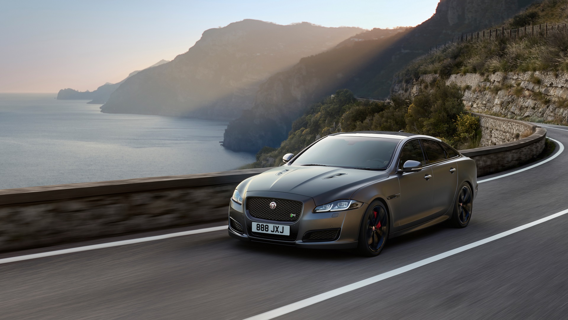 The XJR575 will only be available in two colors, Velocity Blue and the Satin Corris Grey featured on this car. Additional styling cues, such as a rear spoiler, side sills, and revised front bumper, give the XJR575 a subtle but more sporting appearance, as do the black 20-inch wheels. Pricing and availability for the XJR575 have not yet been announced.