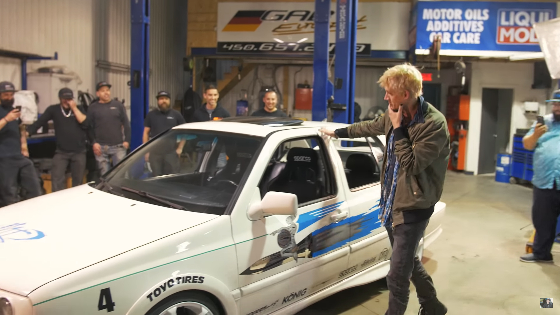 He signs the car and jokes about bringing the car through customs (speaking of which—can we get the Jetta Ute across lines without problems?), as the car was built by GAB Eurosport in Quebec, Canada. The YouTuber, shop, and Lindberg all reminisce about the movie while enjoying the very 2000’s tuner-look of the car. Everything from the gaudy headlights to the accurate decals on the car makes you feel like this is a behind the scenes look at a shop on the set of the movie. When another replica pulls in—that of Brian Walker’s Eclipse—it makes the scene a whole lot more believable.