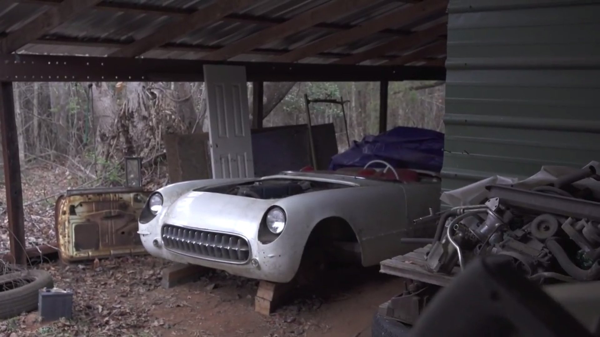 A barn find is the automotive equivalent of panning for gold. To uncover one requires patience and persistence, not to mention sifting through mountains of dirt and debris. But Hagerty’s Tom Cotter is a man on a mission, and his dedication yields an amazing discovery on the latest episode of Barn Find Hunter: a matching-numbers 1954 Chevy C1 Corvette sitting in a dusty open-air shed on an overgrown lot in North Carolina.