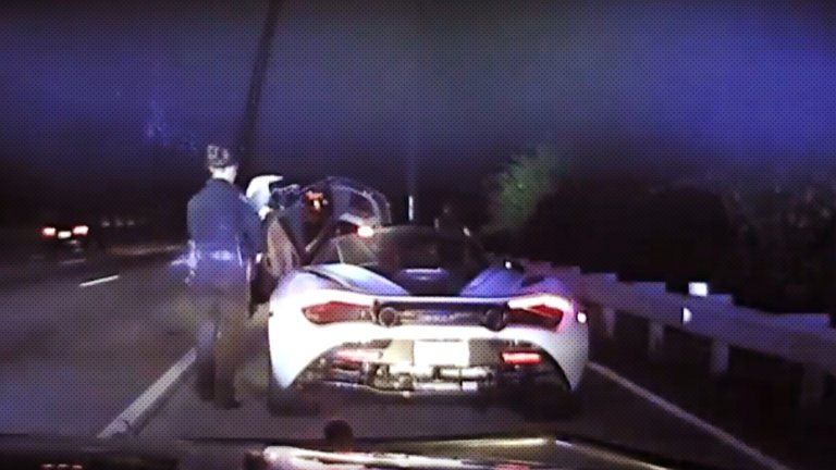Danger then follows the car along the highway while calling police, cluing them in that the driver is possibly intoxicated. Several stops are made along the way, including an animal hospital and a gas station, but the driver doesn’t show any signs of letting up. While on the highway, the Mercedes belches smoke from the engine bay. Eventually, it loses its front bumper at speed and our intrepid cameraman misses it.