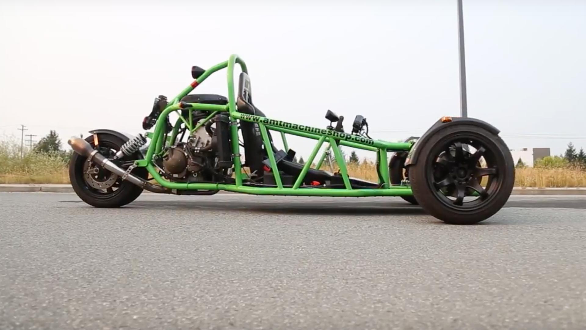 If you drop a Kawasaki Ninja 900R engine in just about anything under 2,000 pounds you are an absolute maniac. If you drop a Kawasaki Ninja900R engine in something weighing 730 pounds, you should be committed. Well Adam from AMT Machine Shop in Vancouver, British Columbia did just that with his custom three wheeler-car-trike-kart-thing. The pound to horsepower ratio is just 5 lb/hp, significantly lower than the Dodge Challenger Hellcat’s 6.29 lb/hp.