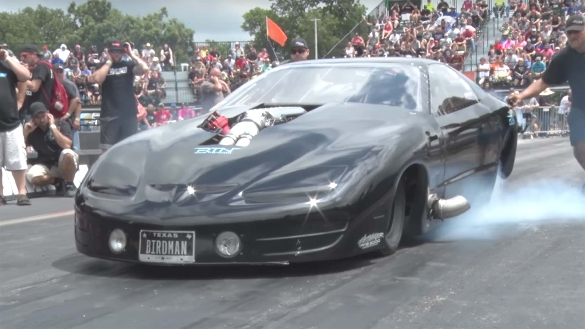 James “Birdman” Finny is arguably the most feared man in the no-prep drag racing circuit. He is currently rocking a 4,000 horsepower 572 Hemi V8 that can rip unreal drag times when the track is sticky enough. As you can see in the video below, the massive Firebird struggled a couple times to make a straight line, but Birdman kept things in order and ended up winning a hefty sum of money at the end of the night.