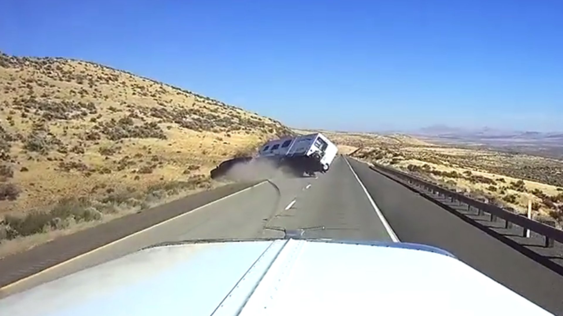 But still, even the most perfectly balanced trailer in the world can step out when confronted with a windy highway, jerky steering inputs, and a lead-footed driver. This wreck also illustrates the dangers of riding in a trailer like this at highway speed—camper trailers aren’t really designed with rollover safety in mind. Hopefully another video like this doesn’t come out of Labor Day Weekend, where millions will take to the road for one last gasp of summer.