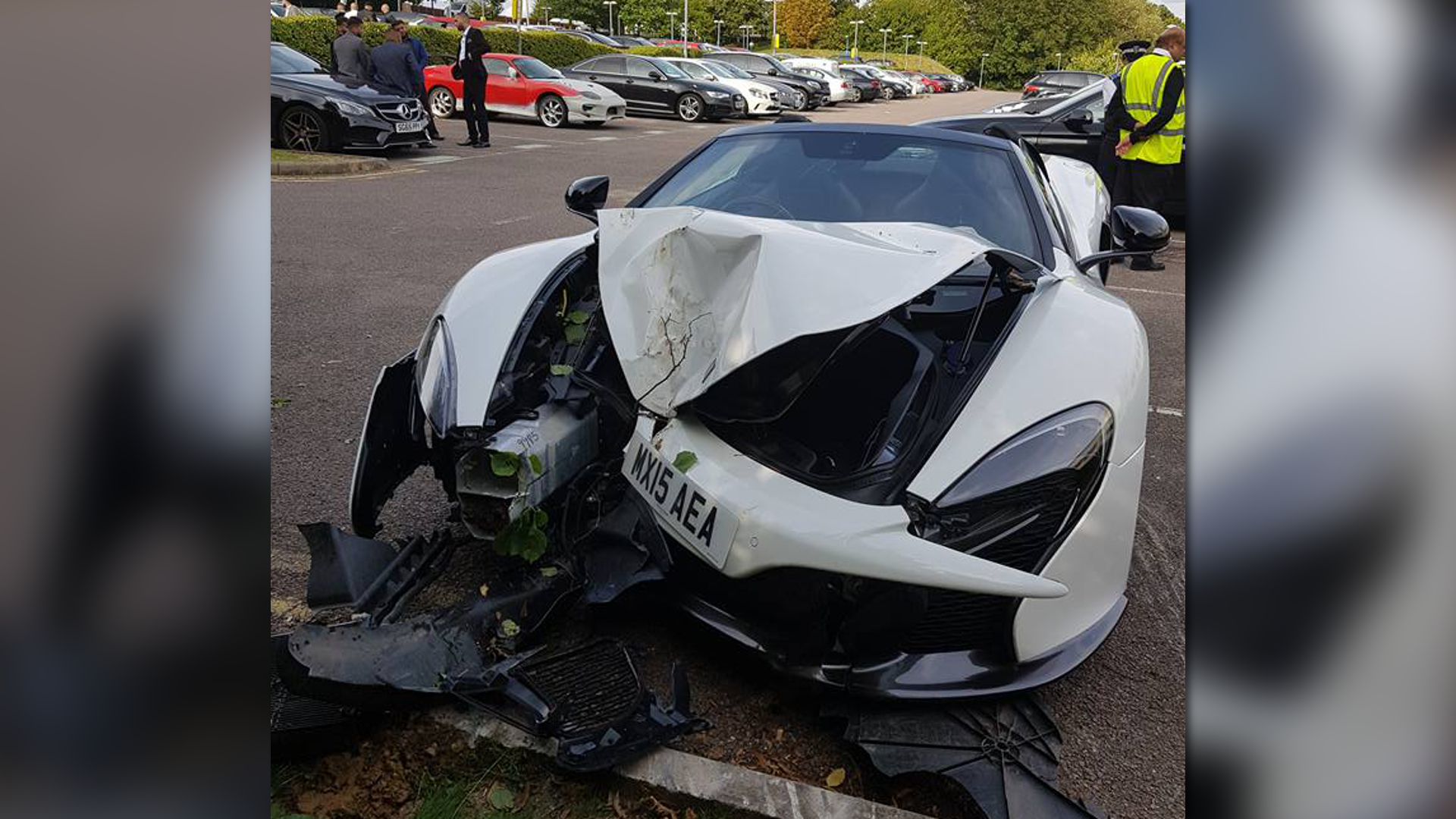 Whether or not you think launch control is a useful feature in modern performance cars, chances are you’ll agree that the one place it absolutely shouldn’t be activated is in a tree-lined parking lot full of cars. But sadly, the combination of a rental McLaren 650S Spider and a wedding party full of British bros proved too much for the driver to resist—with predictably smashy results.