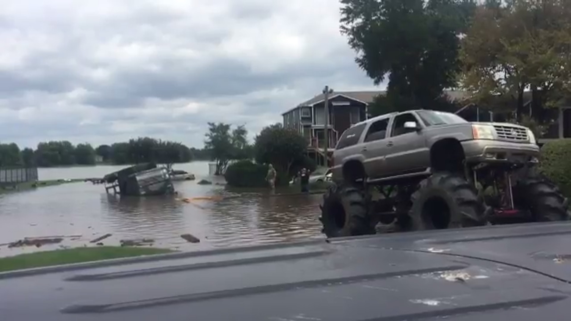 Alright, so lifted may be a bit of an understatement when describing just how high that Escalade is riding. The monster Caddy belongs to a member of “Rednecks with Paychecks,” an off-road enthusiast collective of, well, self-professed rednecks with paychecks. The group hosts several massive, mud-filled gatherings in Texas each year, but it appears they’ve put aside preparing for their next event to pitch in with the rescue effort in Houston.