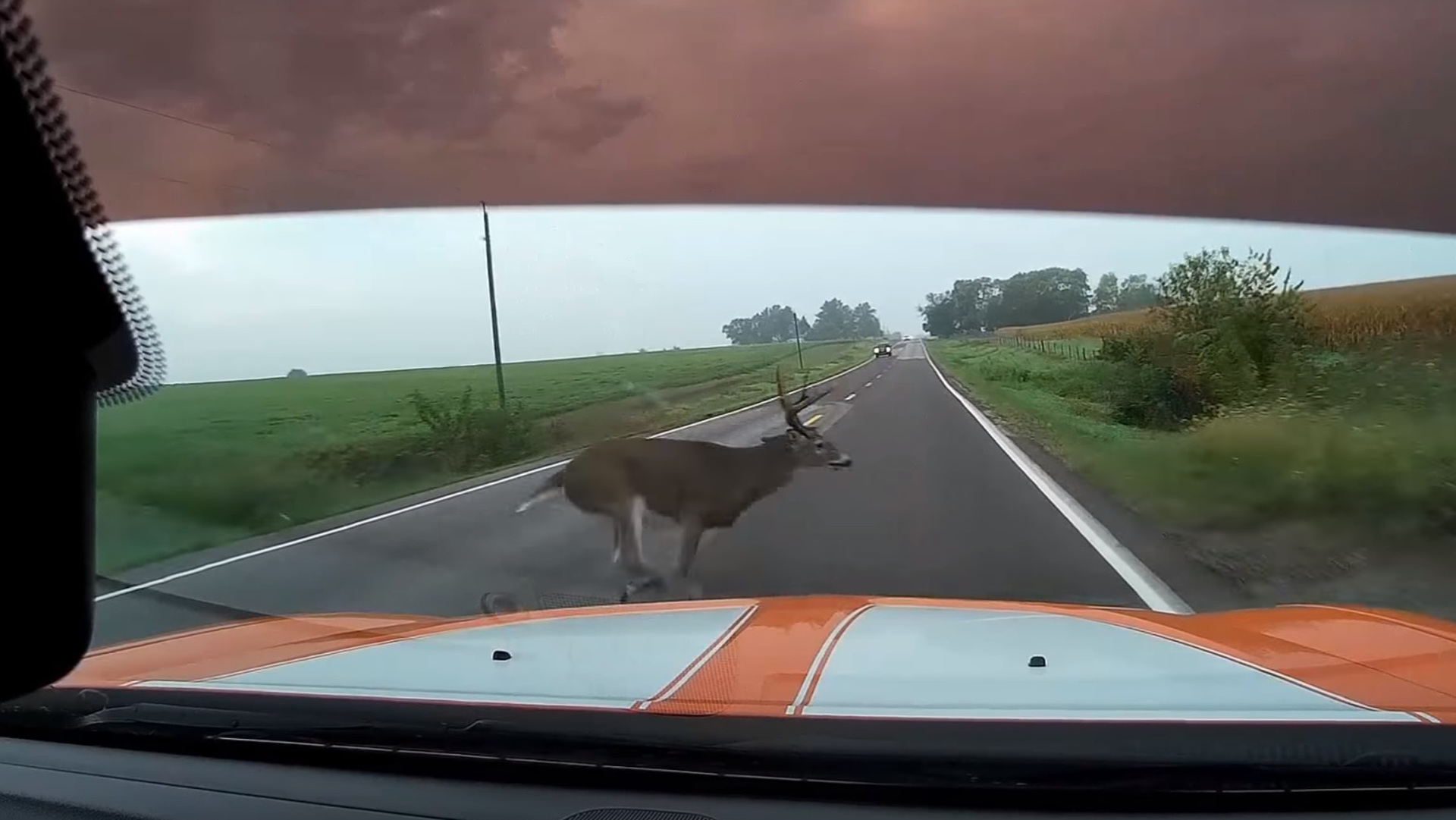 A man named Adam Nichol uploaded a video to YouTube this week that perfectly illustrates that danger. He writes on reddit that he was driving his Header Orange 2014 Dodge Charger R/T (equipped with the 5.7-liter Hemi V8) with his dash cam rolling on Monday morning in a rural area, when the eight-point buck ran out in front of his car. You can see in the video that the deer comes out of nowhere, leaping out of a ditch obscured by tall grass and ending up directly in the Charger’s path in less than a second. It’s a scary reminder of how quickly things can go down.