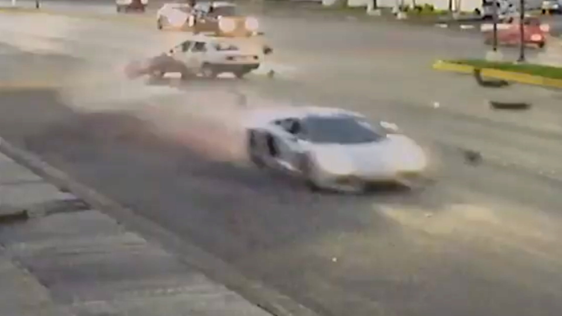 The man driving the Aventador tries to veer to the right at the last second, but it’s too late to avoid a collision that leaves the Tsuru missing most of its front end and the Lamborghini with extensive side damage that will allegedly cost $40,000 to fix. Fortunately, neither driver was injured, and the Lamborghini owner reportedly declined to press charges or hold the taxi driver financially responsible for the crash.