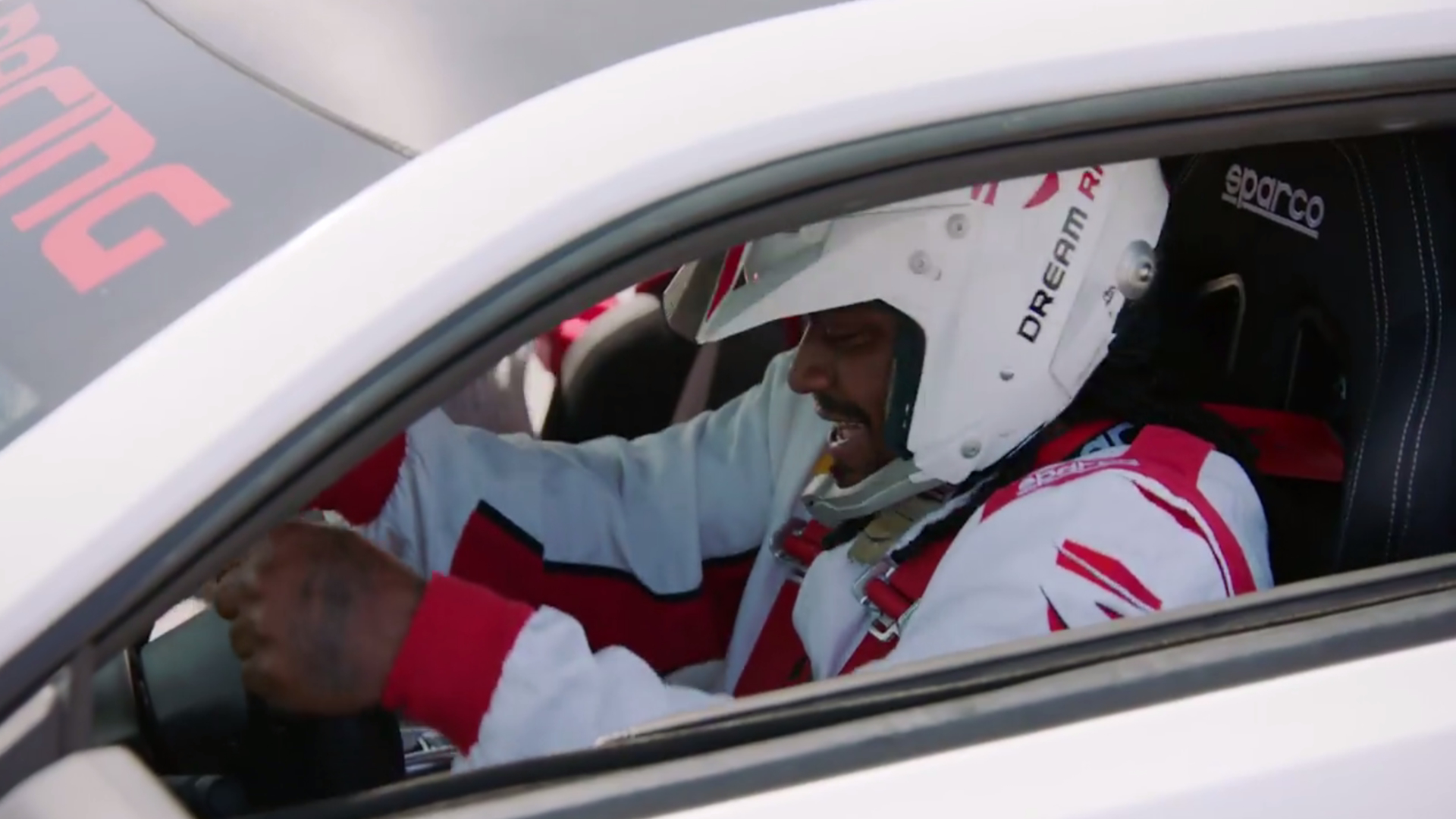 Dream Racing is an exotic driving experience in Las Vegas allowing customers to get a chance to drive supercars and a few legitimate racecars on track. Customers can also be driven around for drift experiences. Lynch first gets in the Camaro ZL1 with professional racecar driver, Ale Bressan. Bressan shows off Dream Racing’s drift experience and Lynch being his normal comical-self opens the passenger door while Bressan does donuts and figure eights.