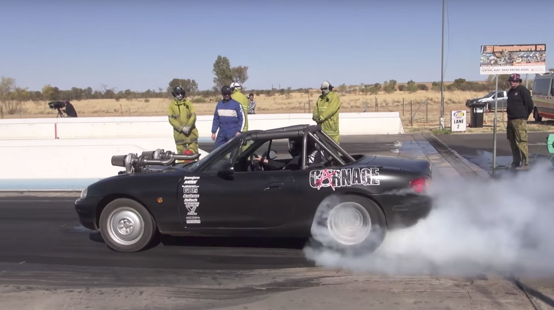 The internet has hyped the Mazda MX-5 Miata beyond recognition, turning what was once a humble sports car into the answer for everything. But that doesn’t have to be a bad thing. Companies make a living off of tuning the wonderfully-capable Japanese roadster, improving every bit of the car’s suspension and chassis to make it all the more fun. However, some hooligans get ahold of them from time to time and turn them into this: A twin-turbo, LS1 powered drag car.