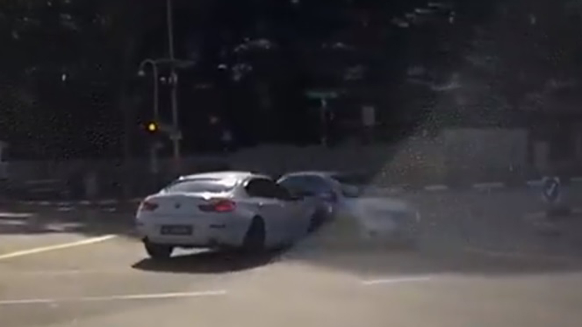 The dash cam video was recorded last week in Singapore and uploaded to Facebook. It shows a white BMW 6 Series Gran Coupe slowly easing into an intersection to make a right turn. Like the British, Singaporeans drive on the opposite side of the road from the United States, so this setup is the same as a left turn into cross traffic here at home.