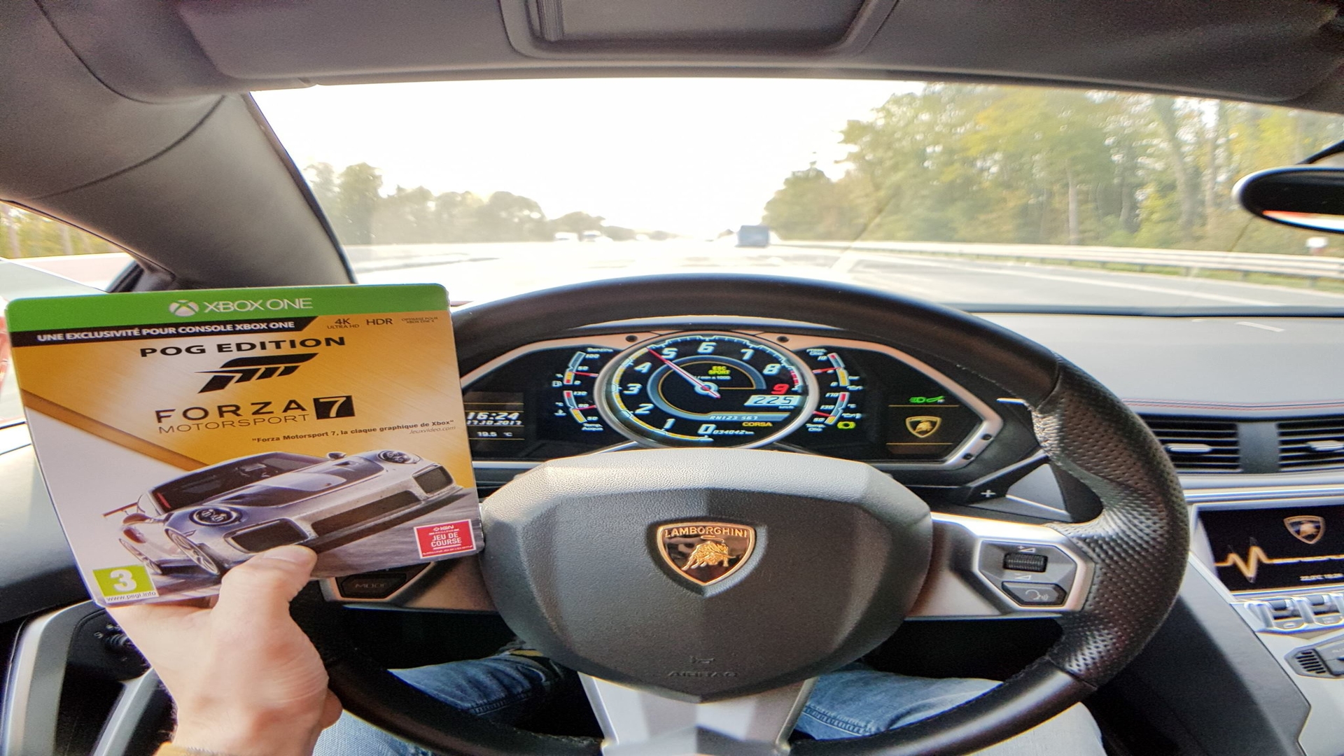 Car and gaming enthusiast POG, who has participated in the famed rally the Gumball 3000, went a different route. He chose to drop the hand held Xbox One controller and drop the faux wheel set up and went for a unique set up. He used his Lamborghini Aventador as his Xbox One controller. While having the worlds most expensive Xbox One Forza 7 controller he also owns a Ferrari 458 Speciale Aperta and a McLaren 675LT, so his Forza Motorsport 7 car selection screen is even better than the rest of ours.