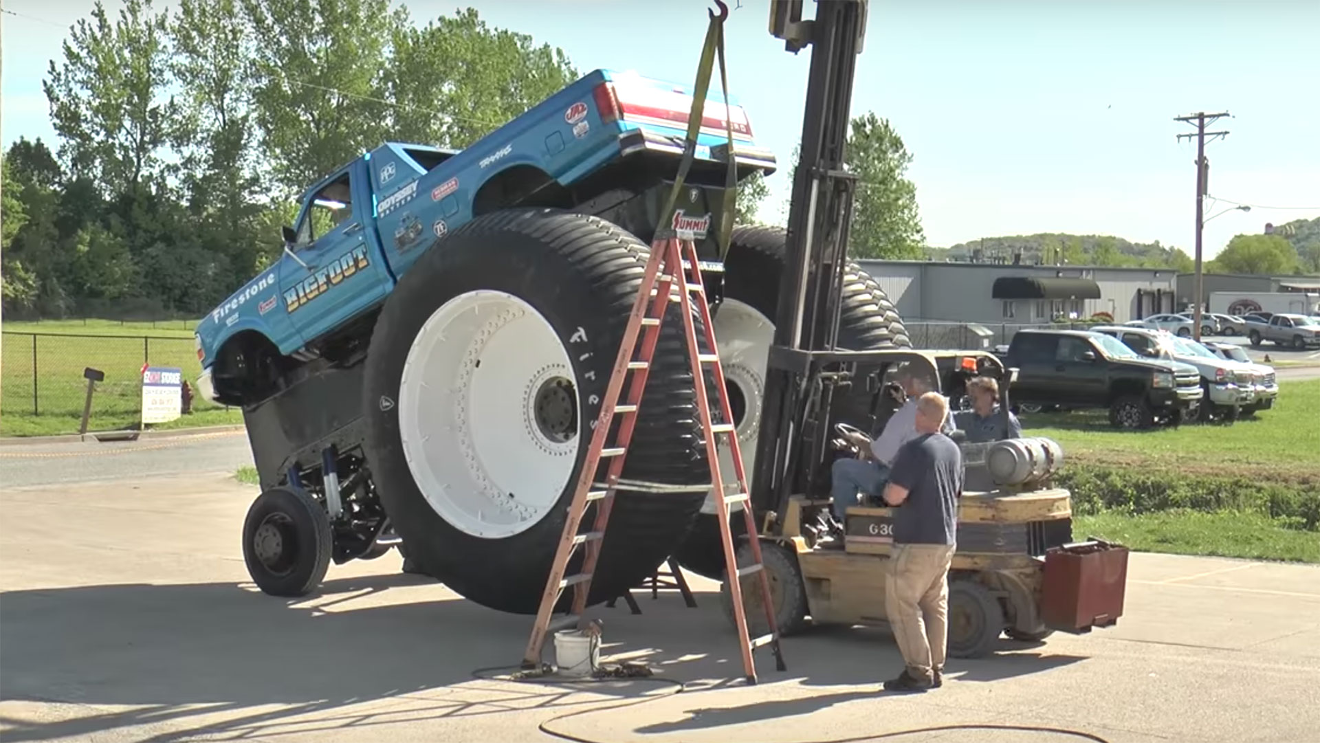 Due to the size of the vehicle, changing tires is a real process that requires massive jacks, fork lifts, and a lot of careful maneuvering. Once the tire change is done, the operator has to climb up the rear suspension/axle to get into the vehicle. Since the Bigfoot team opted to stay close to the original length of the vehicle, the two sets of tires come extremely close to one another, making it easy for the operator to walk between the two as he enters the vehicle. Once the truck turns over, you get to see the careful driving needed to do the simple action of turning the truck around. As you might guess, Bigfoot #5 isn’t going into arenas and jumping cars, instead it is more of a show truck.