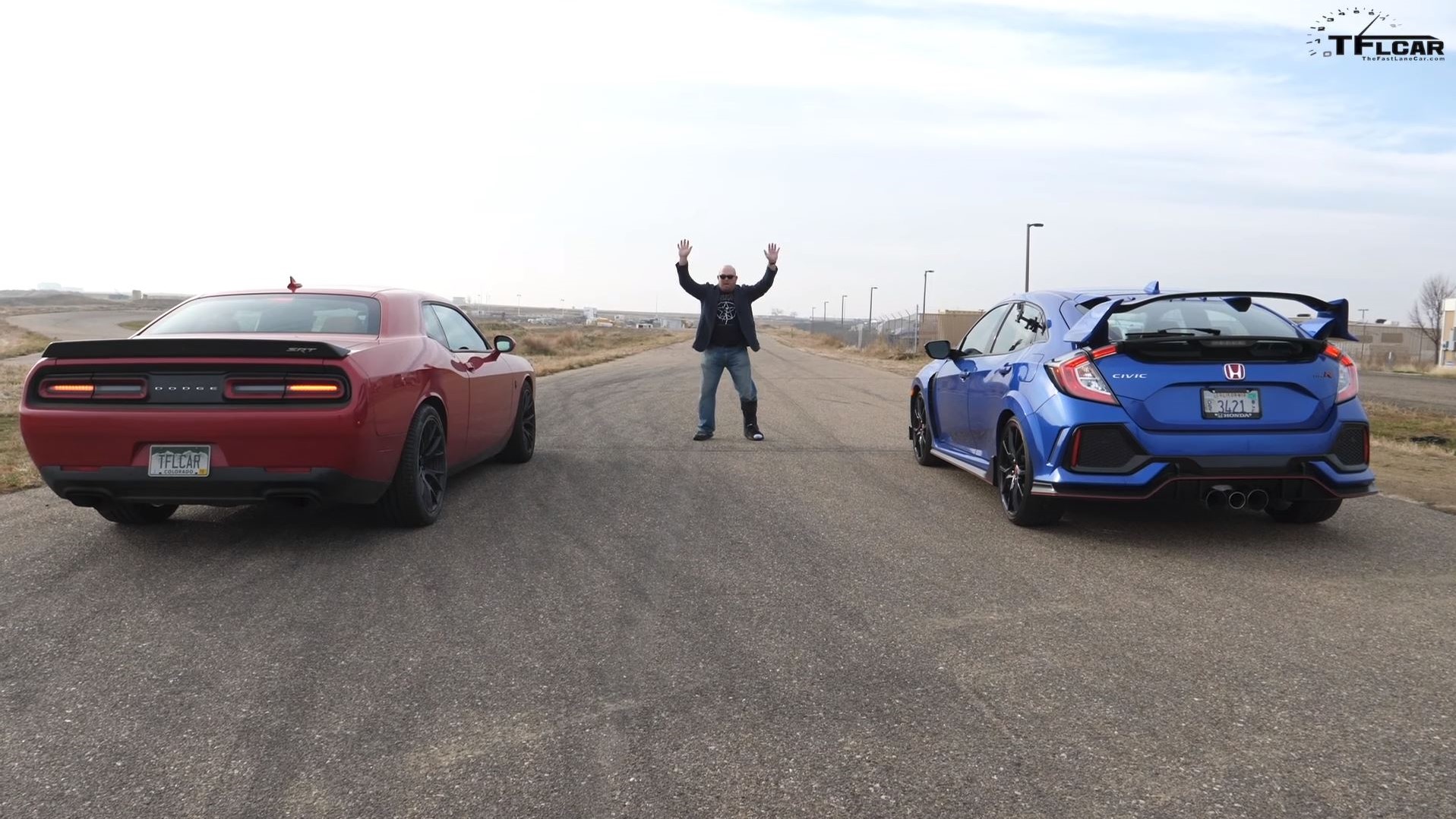 A father and son team from The Fast Lane Car have put two very different vehicles head to head on the track. A Dodge Challenger SRT Hellcat faced off with a Honda Civic Type R in both a drag race and a hot lap. The results were…predictable.
