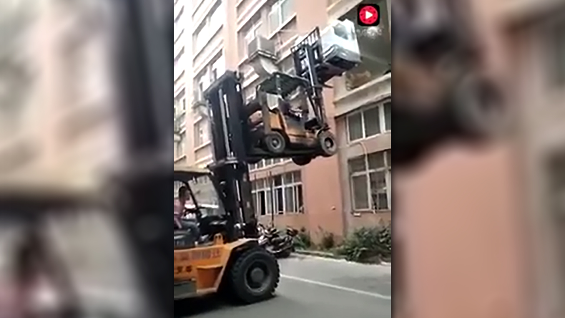 Listen, we understand that sometimes you have to improvise to get the job done. No matter the industry, workers run into situations where the ladder is just a little too short, or the bolt is just a little too small, or the tool just isn’t right. America was built on that kind of forced ingenuity. But double-stacking forklifts to deliver a giant piece of machinery to a second floor opening in an exterior wall? That’s a bridge too far for us.