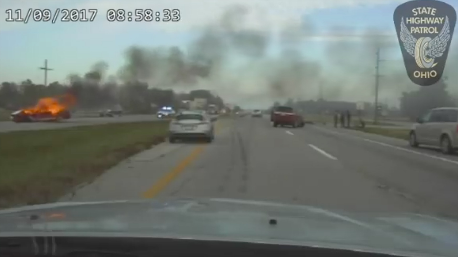 Unfortunately, this happened to 21-year-old Jose Gonzalez, when he collided head-on with another vehicle while allegedly driving under the influence. As you can see in the dashcam of a Ohio Highway Patrol officer’s vehicle, the Ford Mustang began smoking after the crash, eventually bursting into flames. Fortunately, a registered nurse and the trooper were able to extricate the victim after the trooper used his baton to break the passenger-side window. Moments after the victim was extricated, the vehicle flashed over and fully engulfed the passenger compartment. Without the heroic actions of the nurse and trooper, Jose Gonzalez would be behind a thick slab of mahogany.