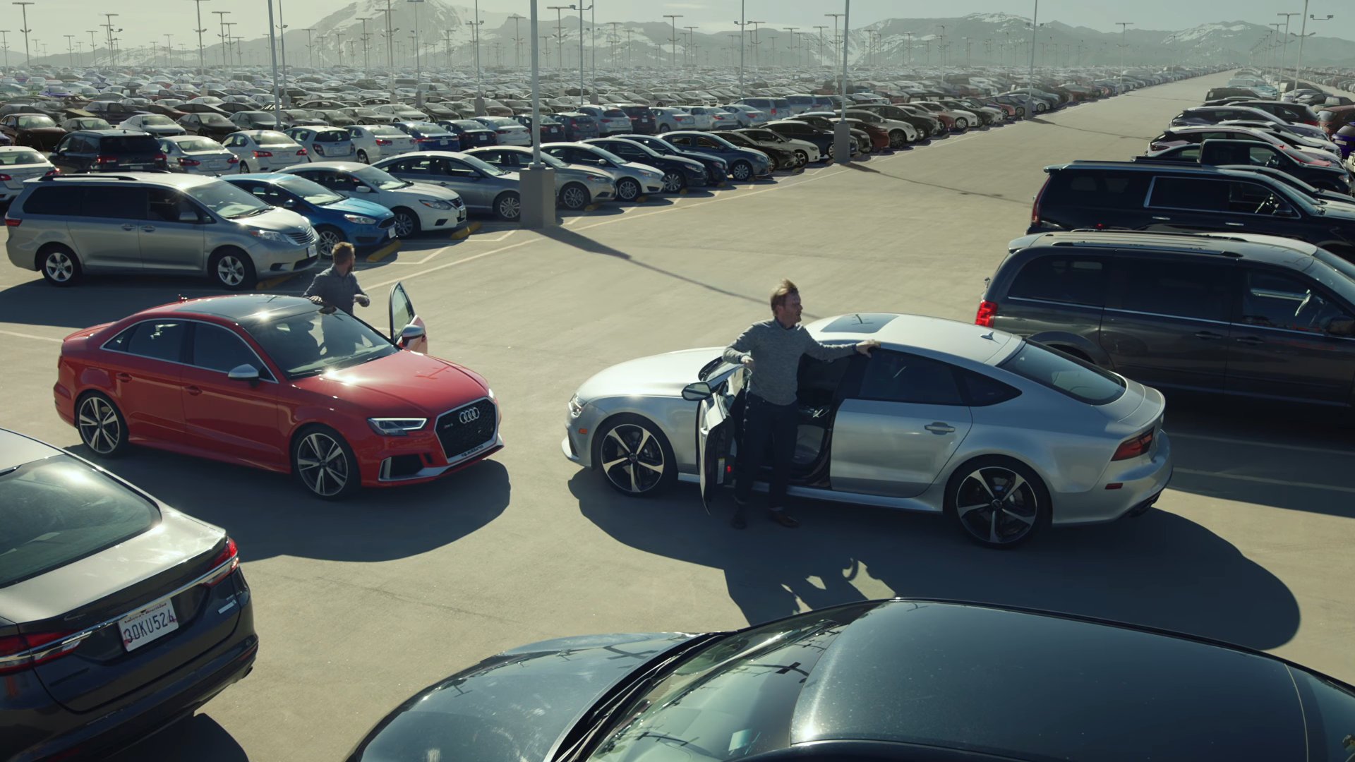 One of Audi’s newest commercials navigates the frustrations of finding a parking spot during the holidays with a pair of all-wheel drive sport sedans. Two exasperated (but well-off) fathers armed with an RS3 and RS7 must face off to claim the last space in a packed mall parking lot. The winner’s reward is seeing his little one’s face on Christmas morning (or Hanukkah) light up at his or her new toy.