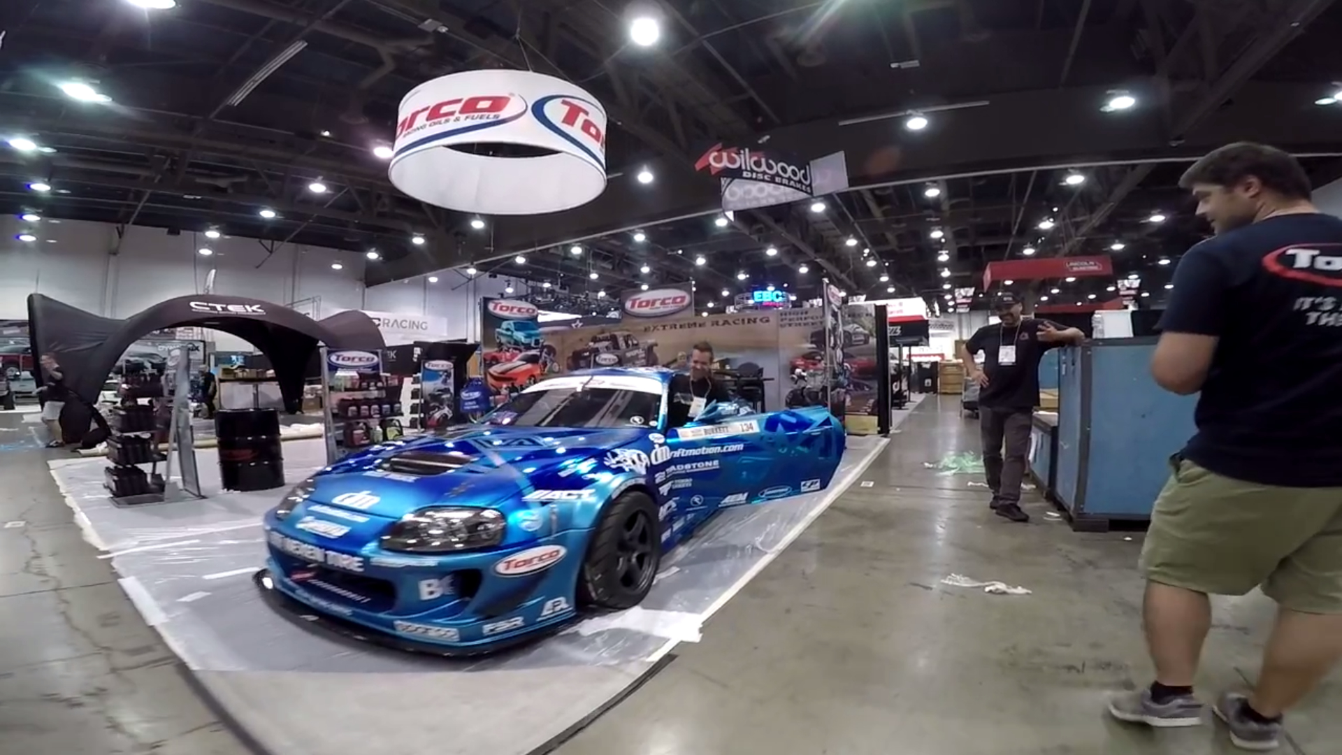 Burkett’s sponsor Torco Racing Oil gives a nice story into Burkett’s humble beginnings in drifting and attempting to gain sponsors. Eventually, the video ends the way it started, Burkett drives his Supra on the SEMA floor to exit, but first, he has to warm up his engine. I’m jealous of him blipping a race car’s throttle inside a building and driving it on the Vegas streets for a short period of time.