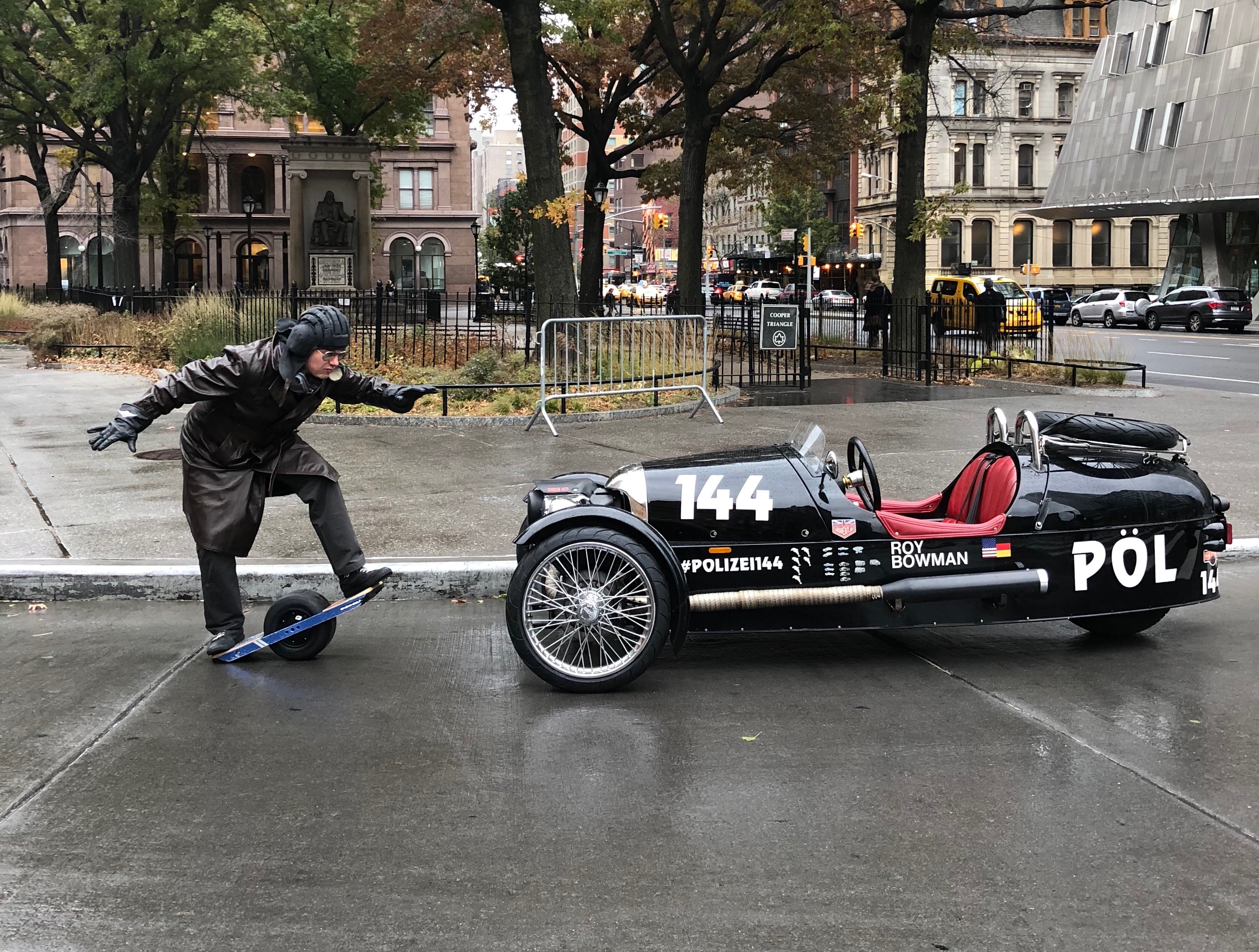 The list of cars “defeated” by my Cannonball record-setting Morgan 3-Wheeler is getting longer by the week: the Porsche 911, the Ford Mustang GT, the e-Moke, the Land Rover Series 1, the Vanderhall Venice, the G63 AMG, and the Land Rover Defender. Why do car manufacturers even bother? The answer is clear: They shouldn’t, because they’re foisting junk on a public tricked by numbers. Numbers, specs, details…no one cares. Real fun can’t be quantified…which is why this week I’ve got a really special competitor. It’s time for a Morgan 3-Wheeler vs. the OneWheel+ Hoverboard comparo.