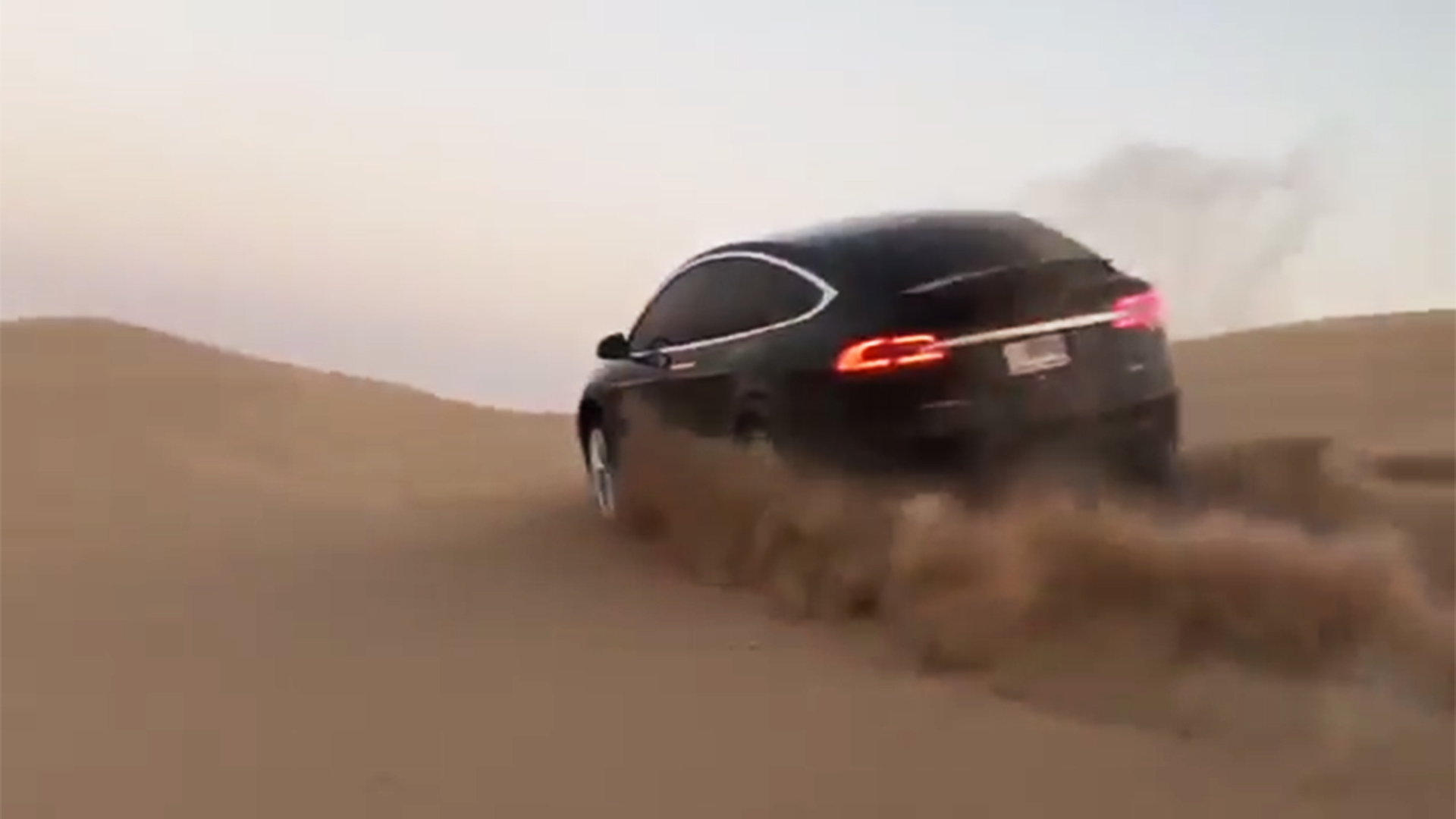 The video shows the Model X perched near the crest of a small dune somewhere in Dubai. After accelerating from a stop, the big battery-powered SUV lazily drifts around the dusty landscape, kicking up sand from all four wheels and handling the slight elevation changes without drama. Unlike the last Model X off-roading video we highlighted, this one manages to avoid getting stuck, and it’s all done on the SUV’s standard low-profile road tires.