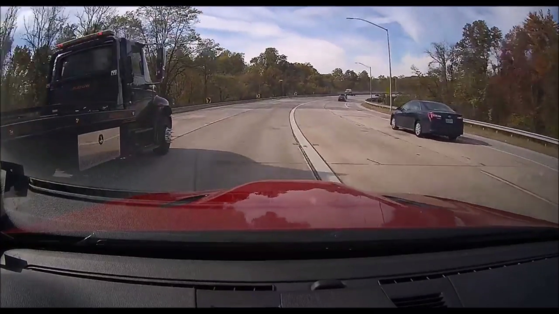 First, I had to dodge a flatbed trying to cut me off coming into my lane and almost hitting me. Then, I saw a work truck with a trailer cut off a car to cross a two-lane road. Even after that, I witnessed a tractor-trailer jackknife itself attempting to make a turn and had no idea how to resolve the situation for a significant amount of time. Finally, I saw the aftermath of a highway accident—all captured on the DR750S-2CH.