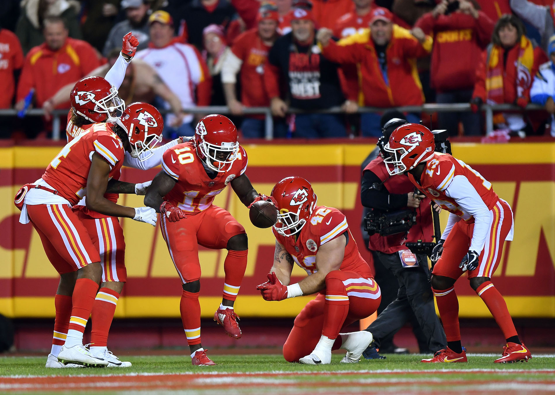 It all began as the Chiefs scored on a long 64-yard pass from quarterback Alex Smith to wideout Tyreke Hill midway through the second quarter during their 30-13 drubbing of the Los Angeles Chargers.
