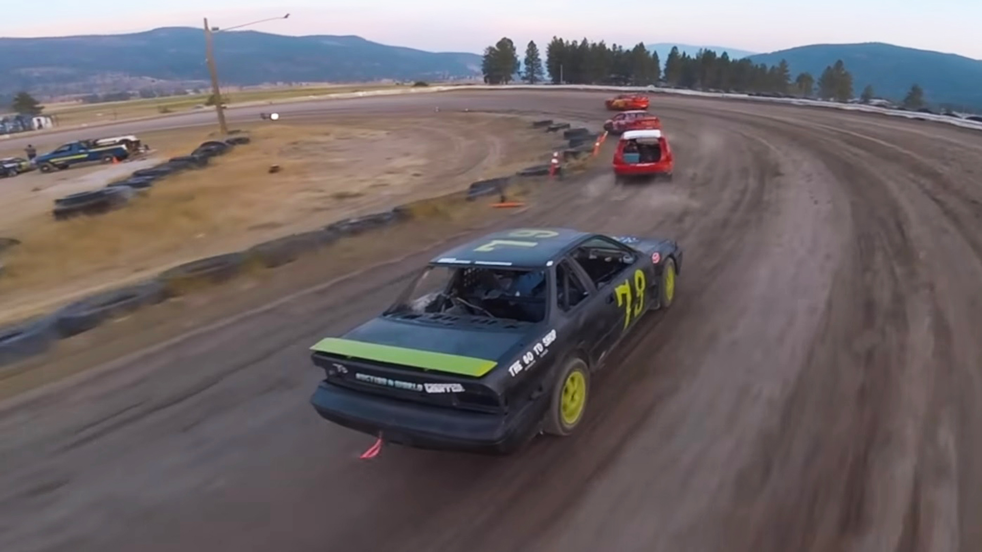 But such trivial matters don’t apply when you’re talking about a rural dirt track and a Saturday night race with bunch of old, beat-up stock cars. YouTuber Skinlab FPV flies a custom-built drone with a Torc frame and Cobra motors, and he documented the competition by following the cars around the oval at speed. The result is a crazy third-person, video-game-esque perspective that gives the viewer a great sense of both speed and position.