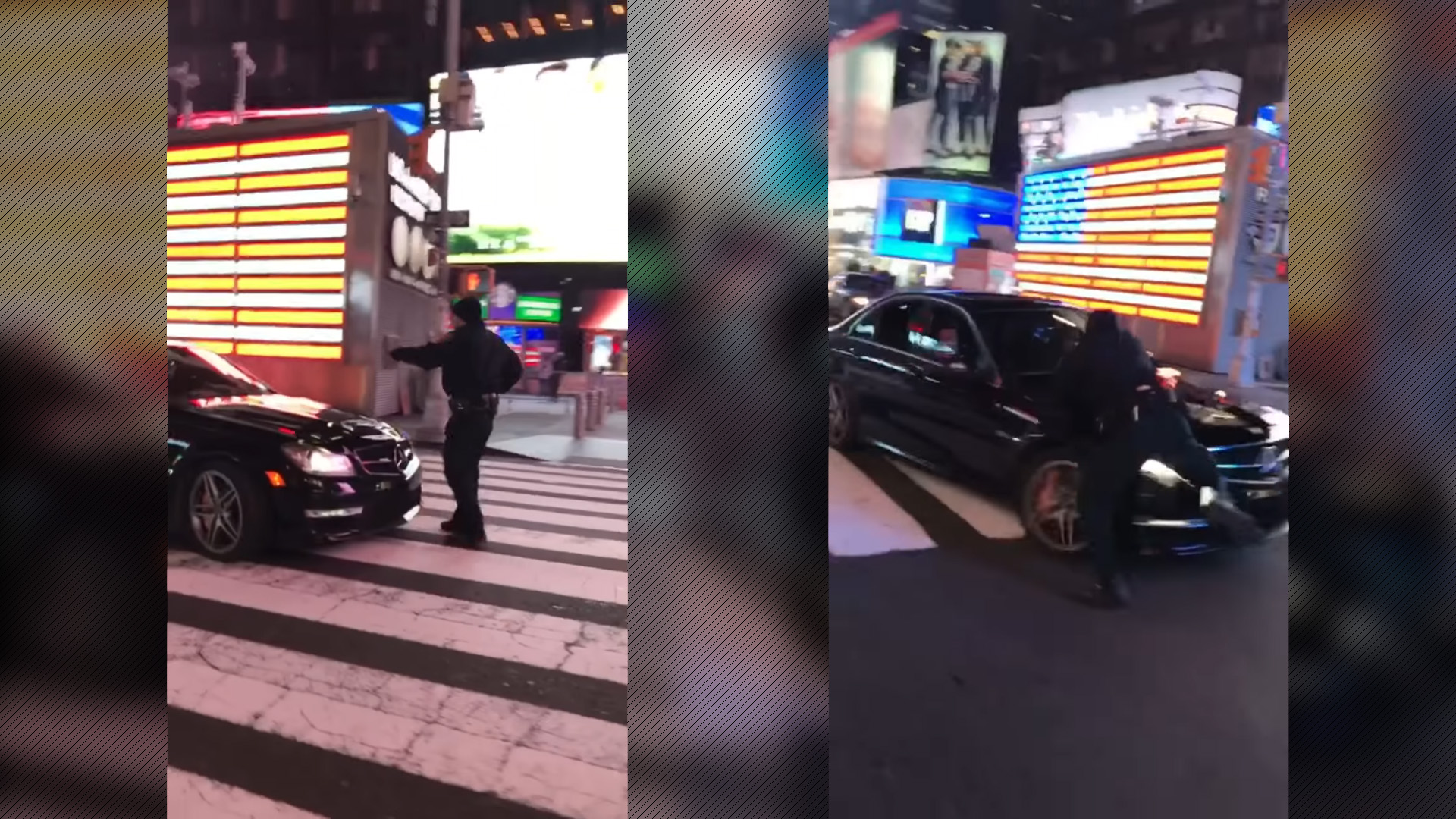 It’s fair to say that as car enthusiasts, we love to see uncommon cars in the street. Even more than that, we love to see these kinds of cars doing crazy stunts, like burnouts. The video below shows both of these things in Times Square, which probably wasn’t the smartest choice to begin with. What we don’t like seeing is when people are put in harm’s way, which is exactly what happened when a Mercedes C63 AMG struck a police officer and several cars to escape the repercussions for the driver’s actions. Two people have been arrested and police are looking for a third person in connection with the incident Sunday.
