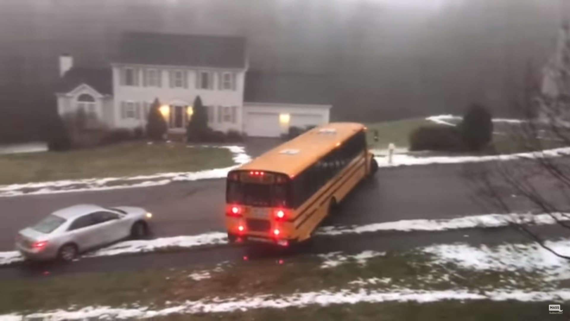 A video of a school bus gracefully pirouetting down a neighborhood road, taking out a mailbox and colliding with a car, has been floating around the internet. Let me tell you exactly what was going on here. The town of Sutton, Massachusetts where this incident took place, is about 40 miles south of me and we suffered similar conditions.
