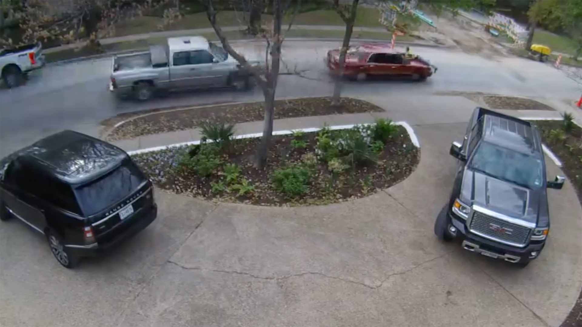 In the video below, you can see CCTV video from a house across the street from a construction site. Suddenly, a mid-2000s Buick rolls into frame and a man suspiciously scopes out the construction site. The man exits the vehicle and sprints towards a tool on the site; once the construction workers realize what is going on, four of them spring into action and pursue the suspect. One of the construction workers even jumps on top of the Buick’s hood in an attempt to stop the vehicle.