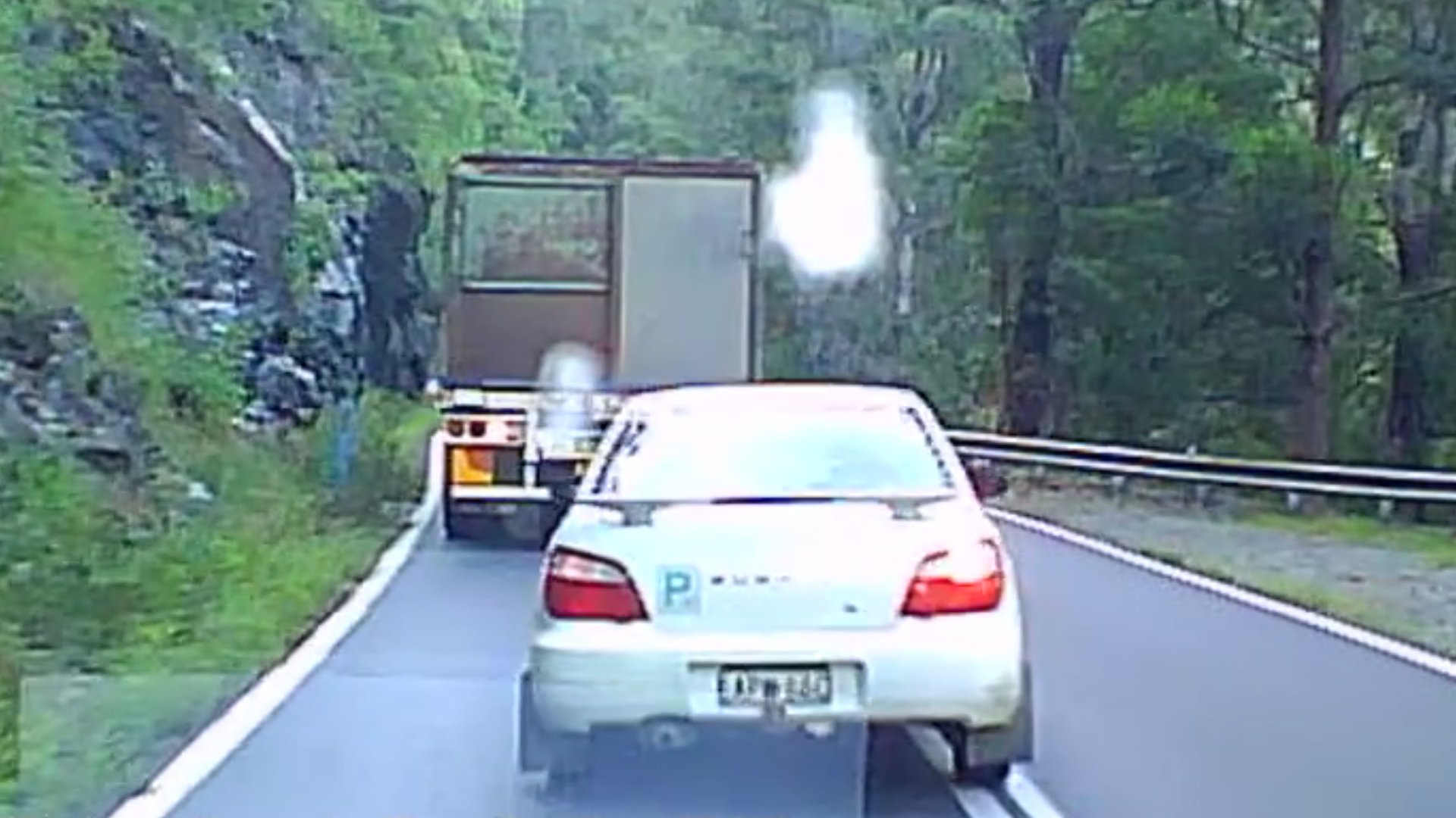 The clip, which was uploaded by Facebook user Cathi Duck, shows a truck barely managing to climb a narrow road with an aggressive uphill grade in Australia. As the truck inches up the road, you can see a Subaru WRX-looking (it could be a 2.5RS, but we’d bet our silver dollars it isn’t) car dash for a pass, but nearly cause a head-on collision while doing so.