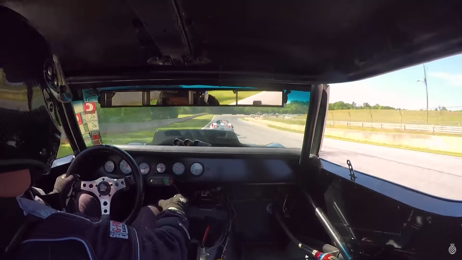 Aside from the glorious side pipes and absurdly-large hood bulge, the final clue that something sinister lurks between the front wheels is that the 1969 Corvette wasn’t offered with a 7.2 liter V8, so that extra displacement had to come from somewhere. Details aside, it’s mesmerizing to watch O’Donnell wrestle the wheel and keep the monster pointing straight as the back end threatens to kick out at every turn. Throw some headphones on for the full experience—the roar of that V8 on the long straight is both angelic and demonic all at once. Some may quibble with his occasional one-handed technique, but with no paddle shifters in sight it’s a necessary skill to master.