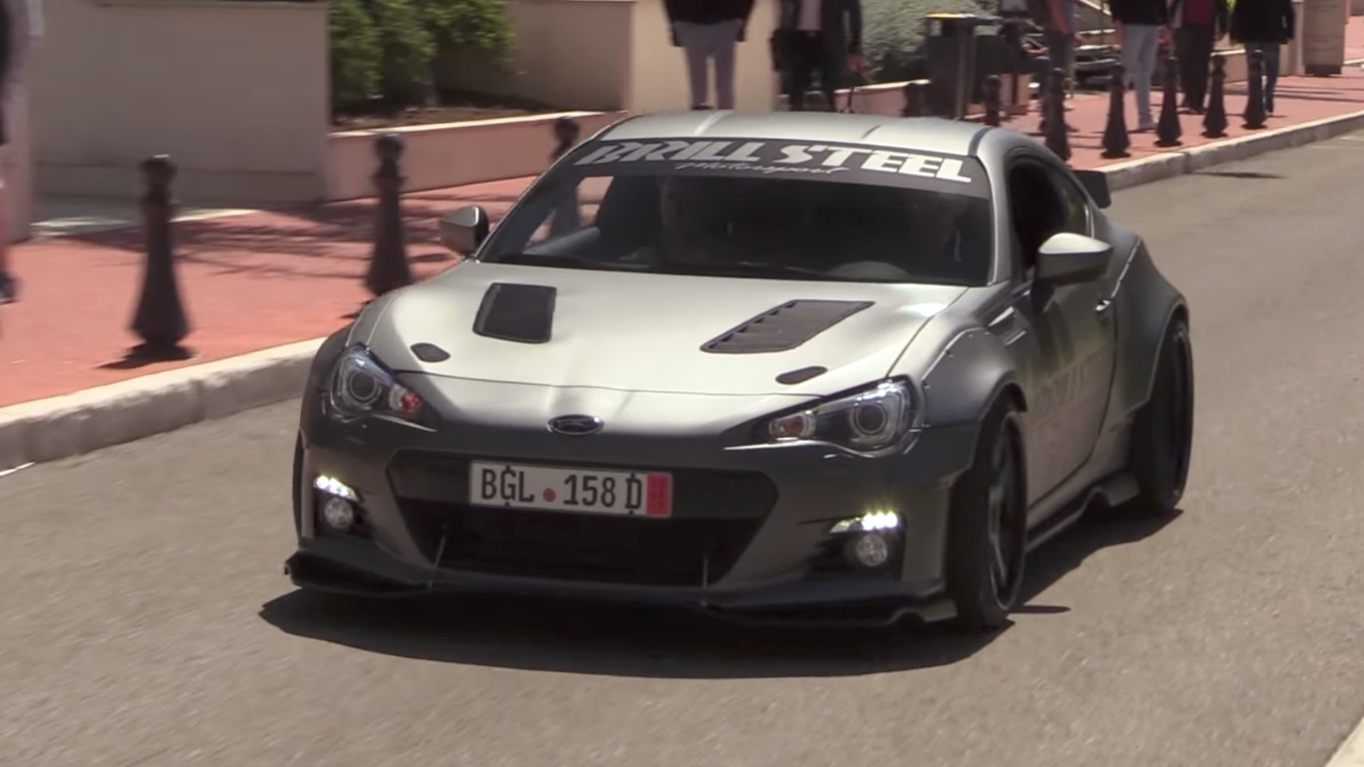 A video uploaded to the 19Bozzy92 YouTube page Tuesday shows a driver in a V8-powered BRZ exploring Monaco during the Top Marques 2017 car show last weekend. According to the video’s description, Brill Steel Motorsport packed the car with a 6.2-liter, 580-horsepower LS3. Though it has a very aftermarket motor, a Rocket Bunny V1 body kit, and some new 19-inch wheels, the car’s build was meant to be relatively stock, according to the video description.