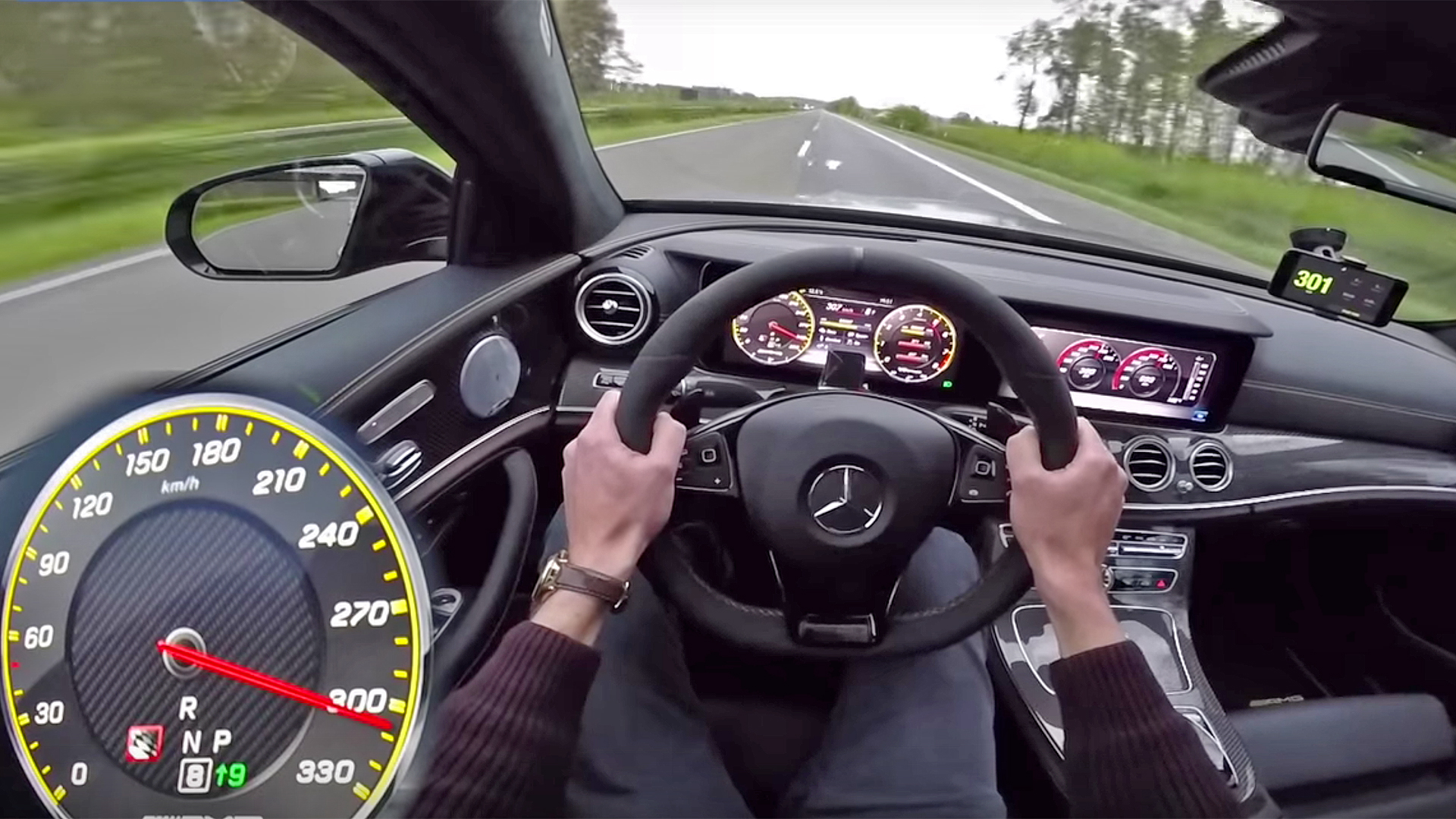 (Yeah, we saw the iPhone rig on the window that seems to suggest the car actually ran out of legs at 302 kph. But who’s to say that random speed-measuring app—if that’s what it is—is any more effective than Mercedes-Benz’s own speedometer? Besides, “See What It’s Like to Hit 187.24 MPH in a Mercedes-AMG E63” just doesn’t have the same appeal.)