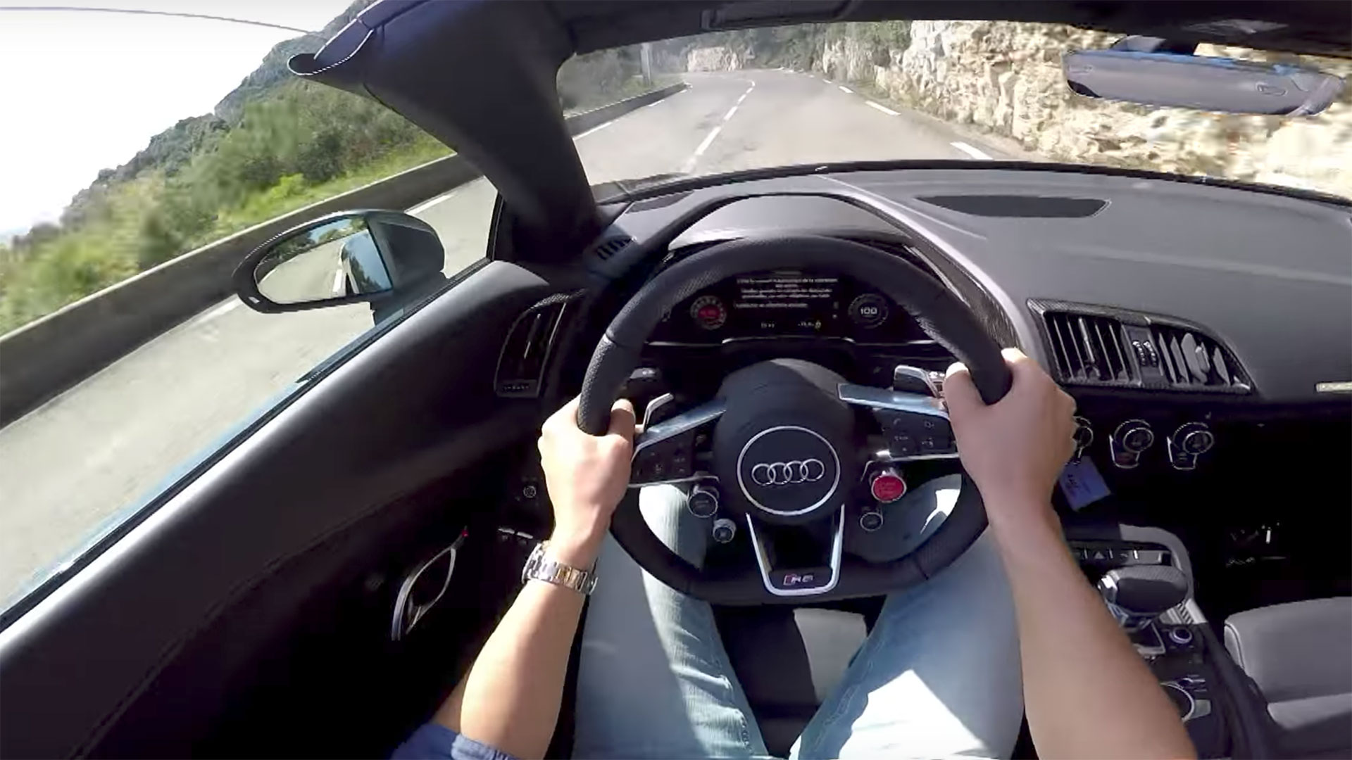 In the video below, we are graced with a first-person view of driving the 2017 Audi R8 V10 Spyder during Top Marques in Monaco. The wonderful sound of the blaring V-10 can be heard echoing through the hills and the wind can be heard whistling by the camera as the car rockets to 60 mph in 3.5 seconds.