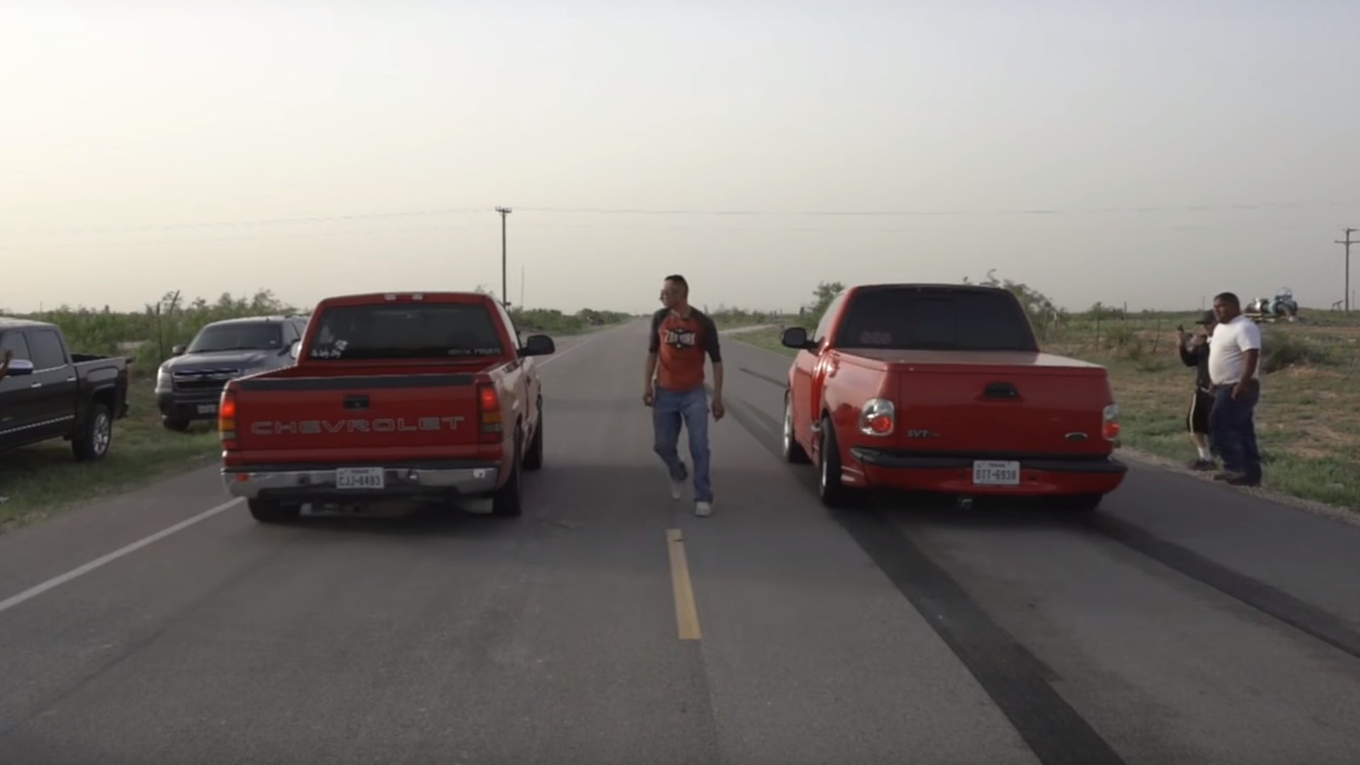 With mainstream manufacturers like Dodge and Chevrolet taking quarter-mile times more seriously than they have in decades and plain-Jane family sedans that are faster than the muscle cars of yore, there’s no doubt we’re in the midst of a new era of drag racing glory. Still, it’s always fun to watch cars—or trucks, in this case—from previous generations go head-to-head in classic rivalries as old as time itself. And where better to pit a turbocharged early-aughts AWD Chevy Silverado against a Ford F-150 SVT Lightning than the land of straight shooters and straighter roads known as Texas?