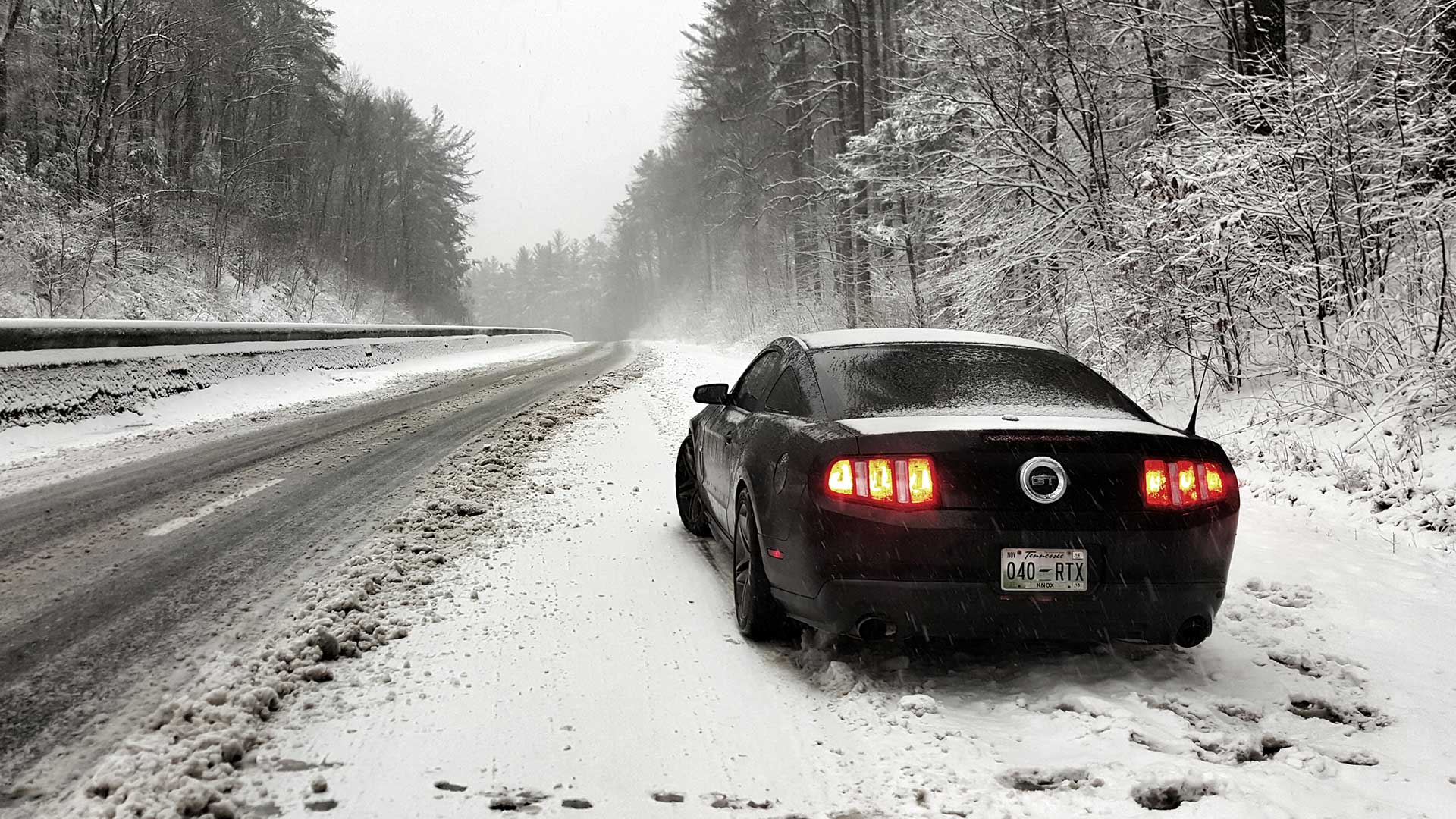 Or not. The closer we got to Asheville, the worse it got. There were no more tracks in the snow. Just hard-packed ice below our tires. The Mustang chimed a sweet-sounding diddy, then spit “SERVICE ADVANCETRAC” out across the gauge cluster. The car had taken it upon itself to disable both stability control and traction control.