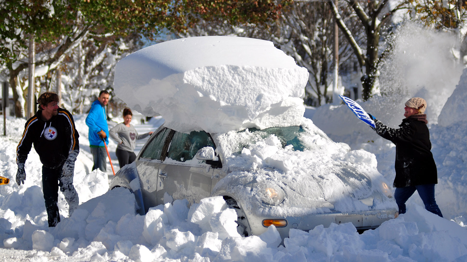 Forward, stop. Shift into reverse. Backward, stop. Shift into drive. Repeat. The procedure is the same for anyone whose vehicle is lodged in deep snow. Eventually, the front wheels can be turned slightly toward the street, and light throttle pressure will help the drive wheels maintain bite as they venture out of the new groove. When he says to not stomp on the accelerator and to avoid smashing the transmission between Drive and Reverse, Lorenzutti speaks from experience. He was a professional rally driver and he’s been repairing cars for nearly 60 years.